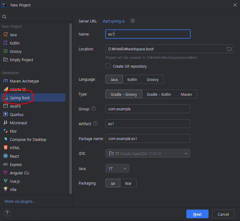 - https://start.spring.io/ 에 있는대로 프로젝트를 인텔리제이에서 생성