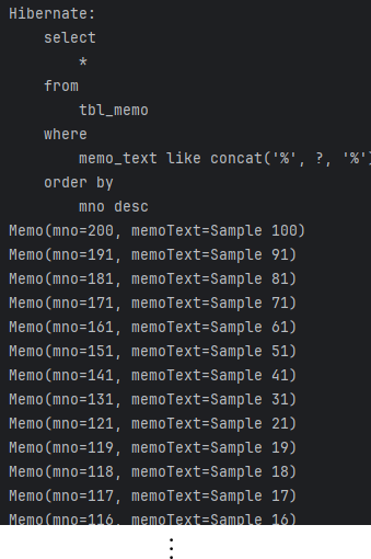 @Query("select m from Memo m where m.memoText like %:memo% order by m.mno desc")